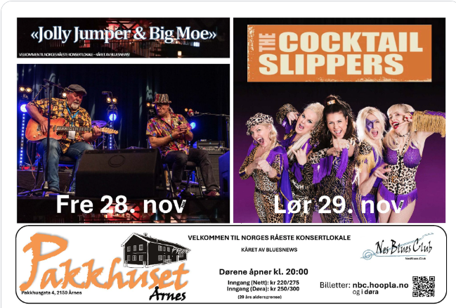 Et forrykende sceneshow med utrolig dyktige musikere som hører hjemme i Oslo, men som turnerer med kjente band over hele verden. Lørdag 29. november kan du oppleve Coctail Slippers på Pakkhuset på Årnes. Bandet, som består av fem jenter som spiller ekte rock inspirert av Blondie, The Shangri-Las. Joan Jett, Foo Fighters og Ramones.